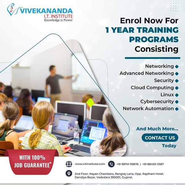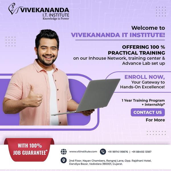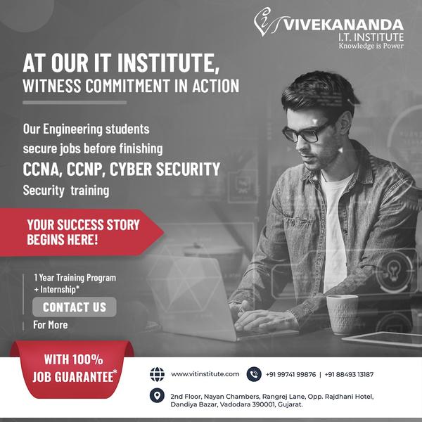 Vivekananda IT Institute in Vadodara is a premier training center offering globally recognized certifications in CCNA, CCNP, CCIE, and Cybersecurity. Our mission is to equip computer science and engineering students with industry-ready skills through expert-led, hands-on learning. We specialize in Cisco certification training (CCNA, CCNP, CCIE, Cybersecurity) and also provide Python programming courses—from foundational coding to advanced networ ... View More